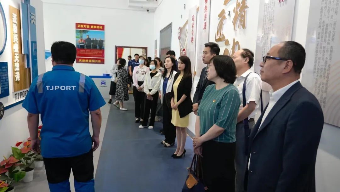 會后,FESCO天津一行參觀了天津港第一港埠有限公司成衛(wèi)東勞模工作室。講解員以時間為序,對工作室成立至今各項黨建工作及履行社會責(zé)任方面的先進(jìn)事跡進(jìn)行了分享。黨員們有序參觀了榮譽獎項、3D打印室、眾智空間與實訓(xùn)基地等,回顧企業(yè)發(fā)展歷程的同時,感受跨越式發(fā)展的蓬勃動力,以及科技創(chuàng)新與技能強國的榜樣力量。